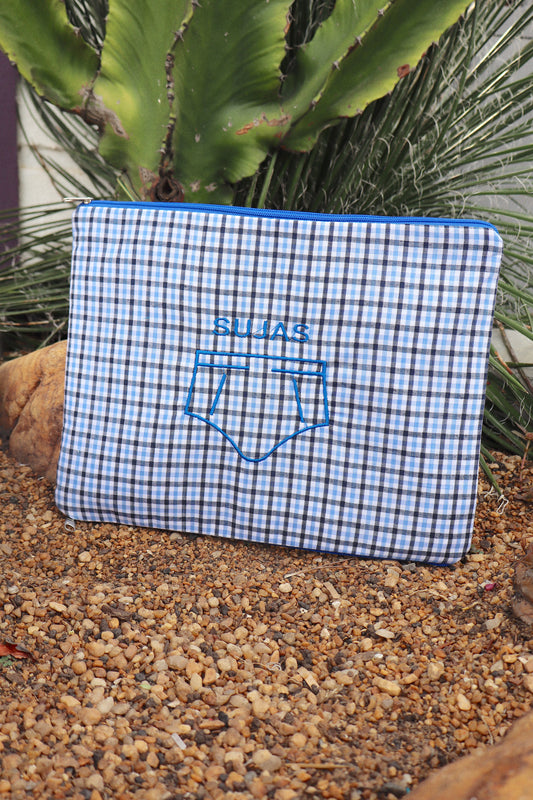 Necessaire Porta Cueca Limpinha Sujinha G Xadrez Azul