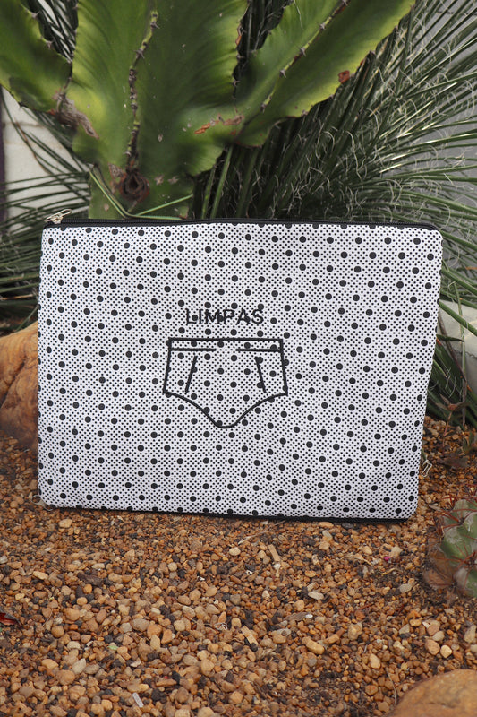Necessaire Porta Cueca Limpinha Sujinha G Bolinhas Preta