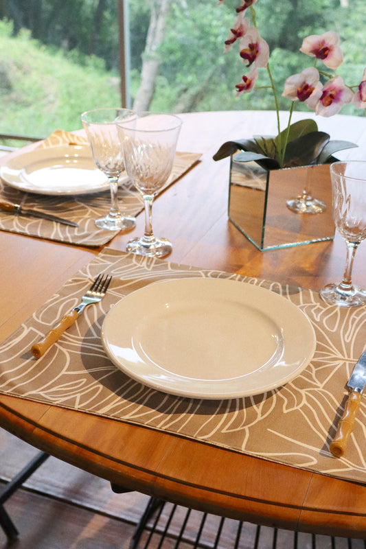 Lugar Americano Dupla Face Impermeável Folhas / Costela de Adão Bege