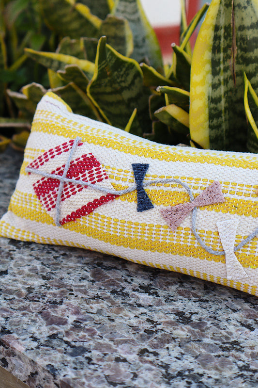 Peso de Porta Algodão Engomado Listrado Amarelo Pipa