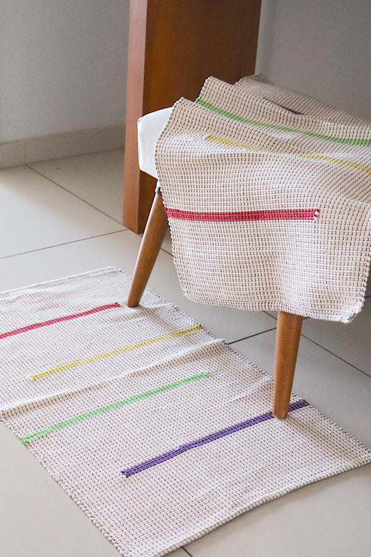 Tapete em Linha Capri Cru com Listras Coloridas 48x78cm