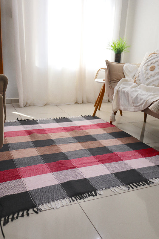 Tapete em Malha Xadrez Preto, Caramelo e Rosa 1,50x1,50m