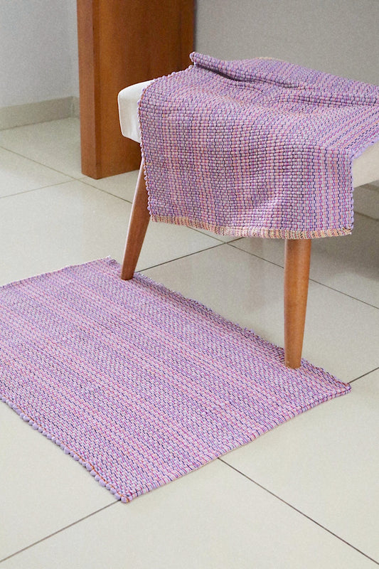 Par de Tapete de Malha Sem Franja Liso Lilás