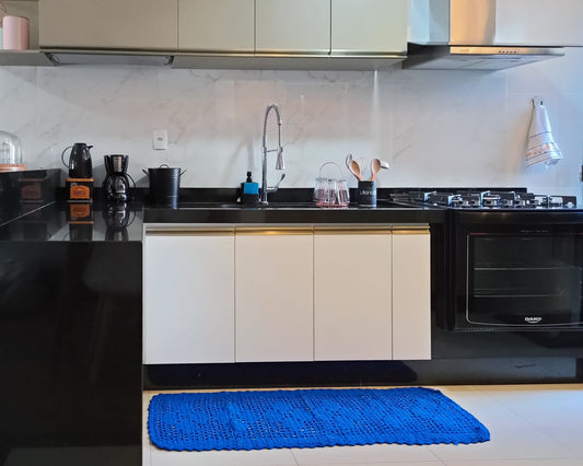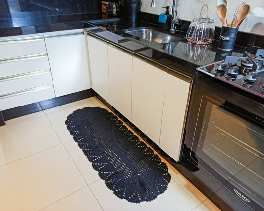 Passadeira Crochê Clássica Oval Preta 128x40cm