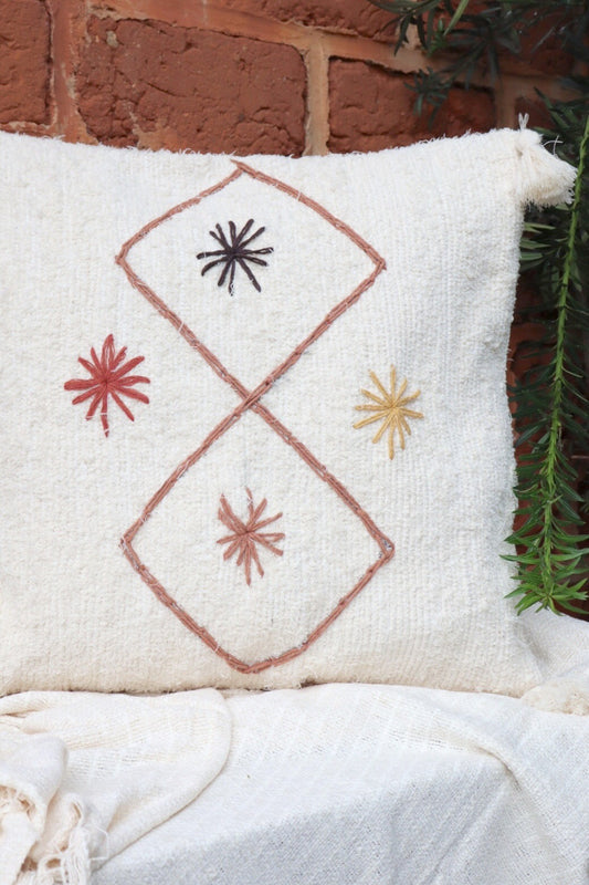 Capa de Almofada Algodão Bordada Losango Bege Felpuda 50x50cm