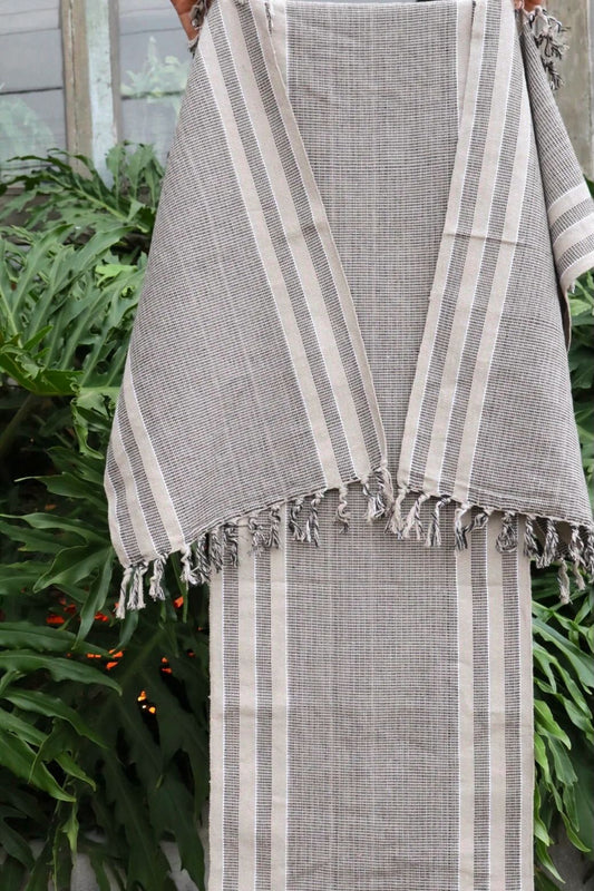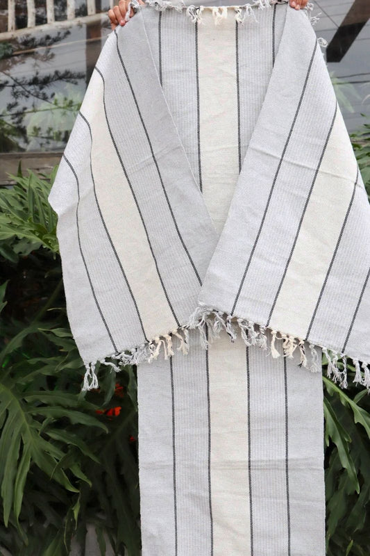 Jogo de Passadeira com 3 Peças em Algodão Comum Listrado Cinza e Cru