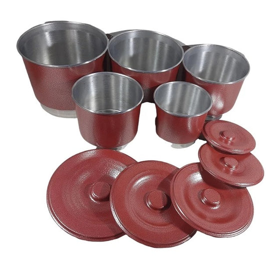 Jogo com 5 Potes de Mantimento de Alumínio Craqueado Vermelho
