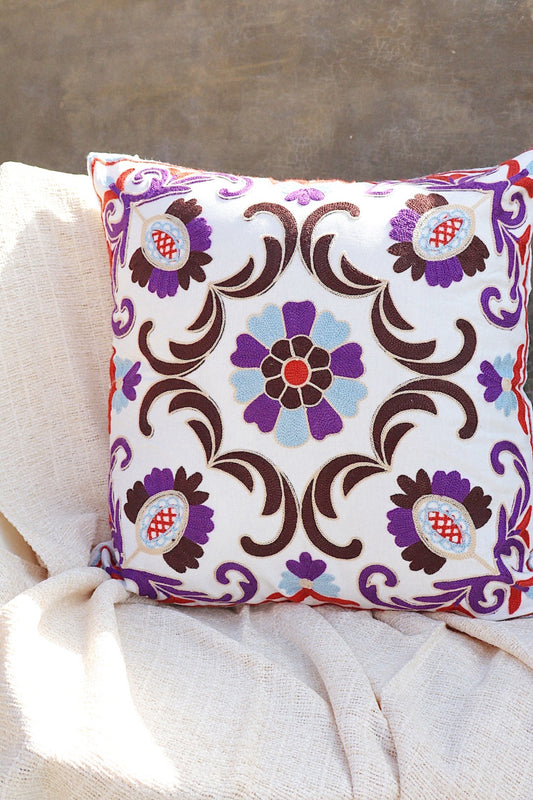 Capa de Almofada Bordada em Linho 45x45 Roxa e Marrom