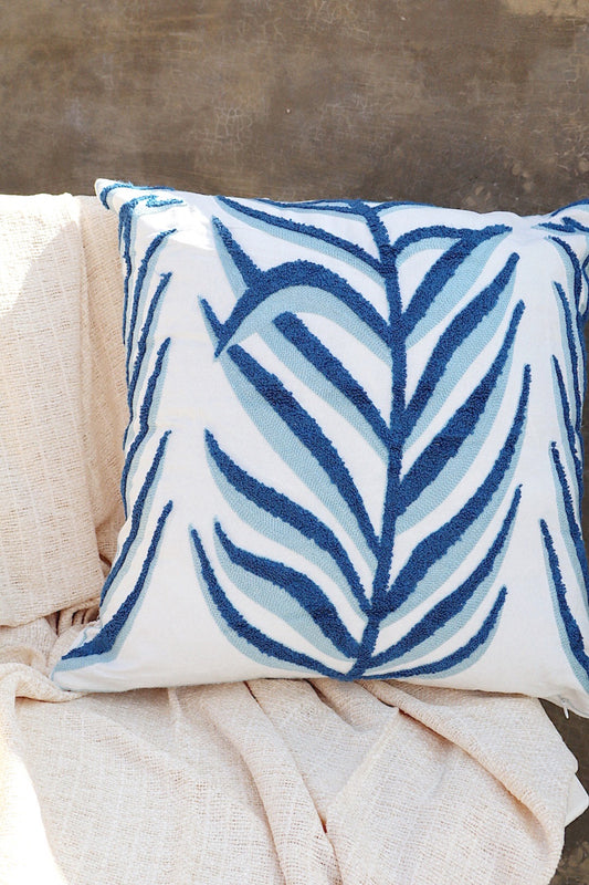 Capa de Almofada Bordada em Linho 45x45 Azul