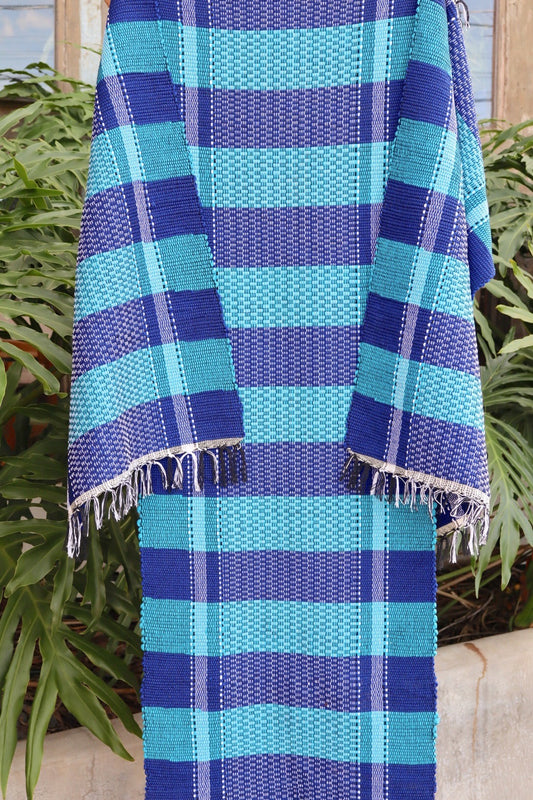 Jogo de Passadeira com 3 Peças Malha Xadrez Azul