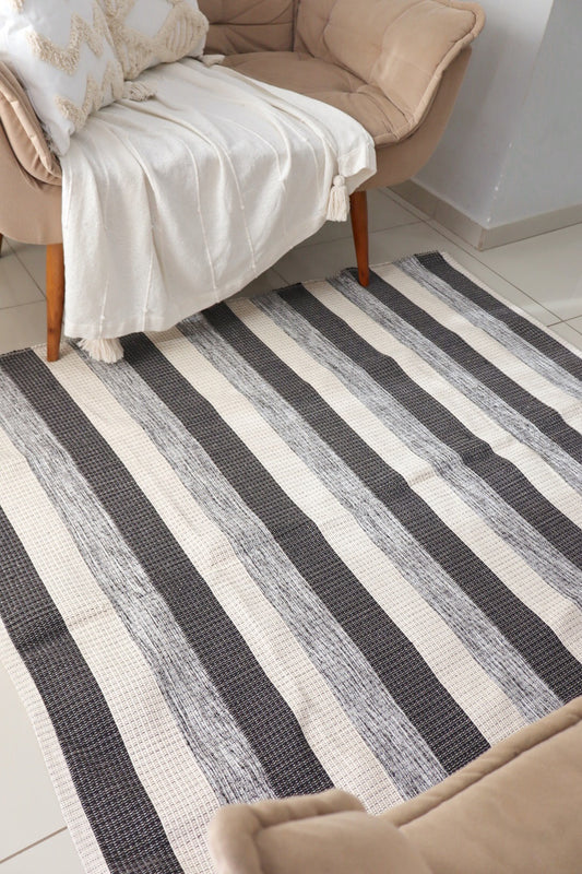 Tapete em Linha Listrado Preto e Cinza 1,50x1,50m