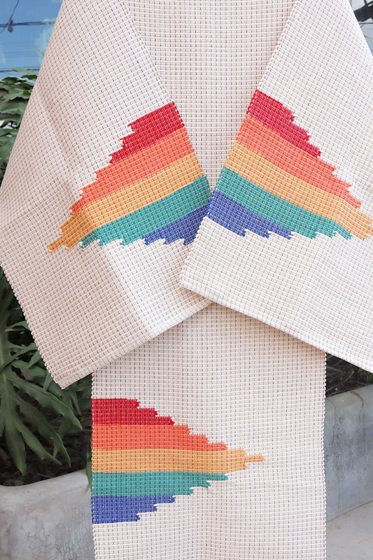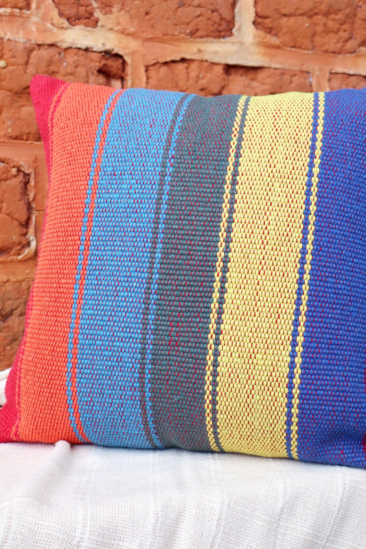 Capa de Almofada em Linha 100% Algodão Colorida Arco Íris 50x50