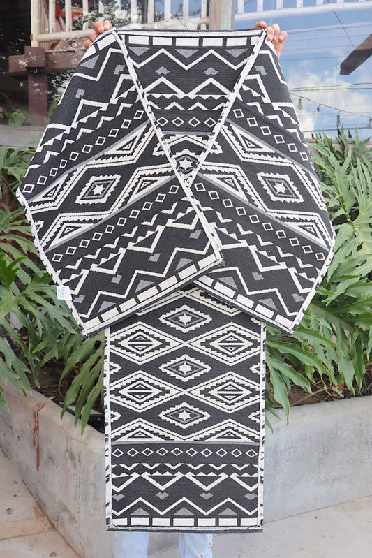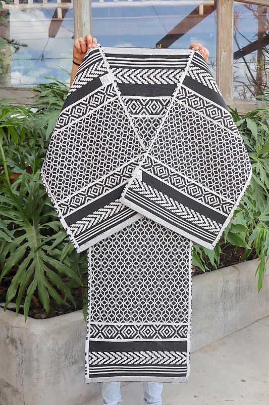 Jogo de Passadeira Algodão Indiano Dupla Face Preto e Branco E3