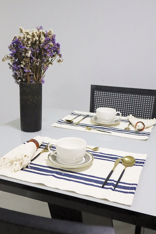 Kit 4 Sousplat Completo + Guardanapos Algodão + Argolas Rústicas Tricoline Azul