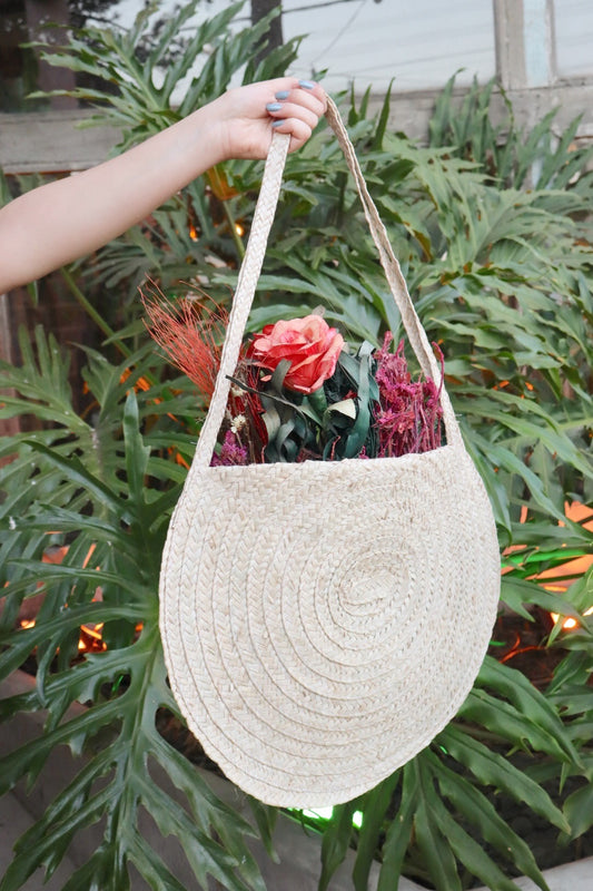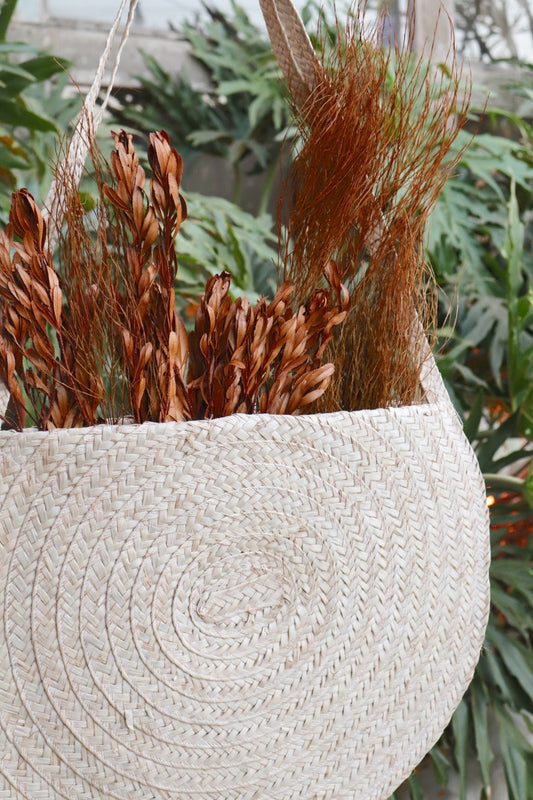 Bolsa Enfeite Parede de Palha com Flores Neutras