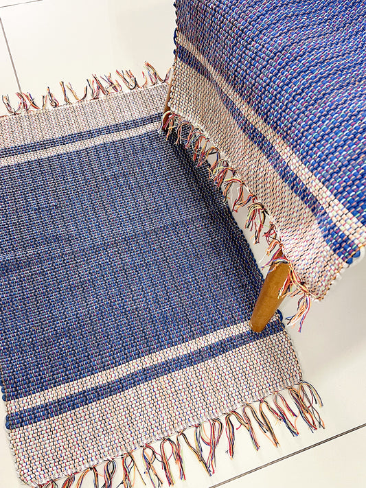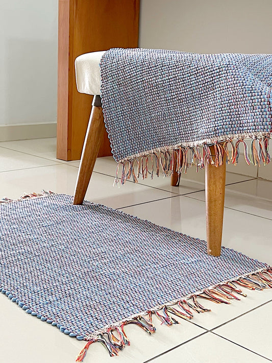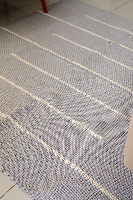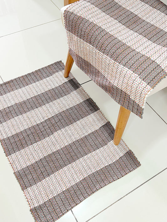 Par de Tapete de Malha Sem Franja Listrado Cinza