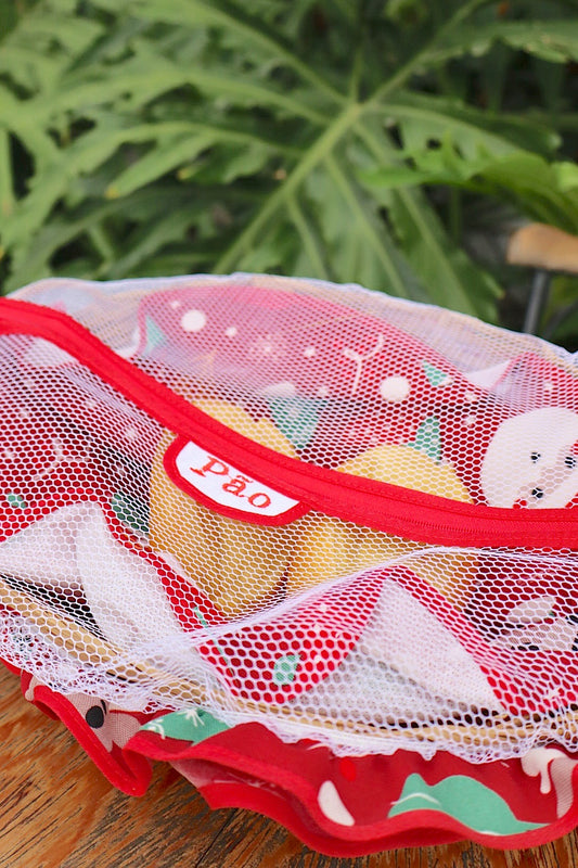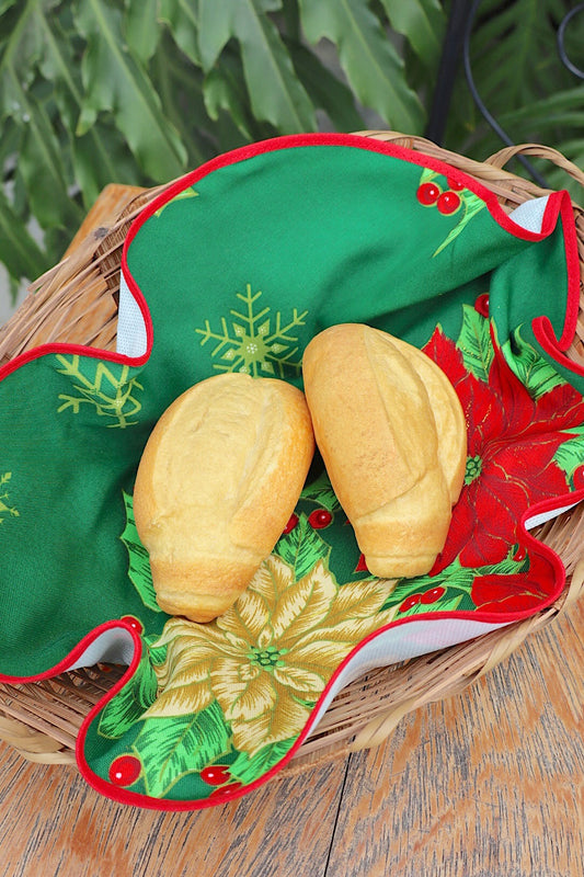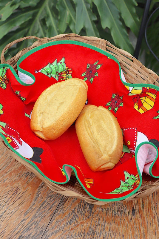 Cesta Porta Pão Bambu com Zíper Natal Vermelha com Viés Verde