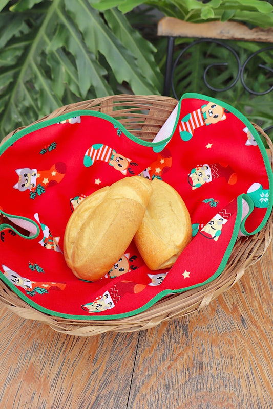 Cesta Porta Pão Bambu com Zíper Natal Gatinhos
