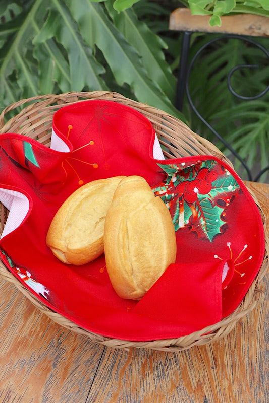 Cesta Porta Pão Bambu com Zíper Natal Vermelha