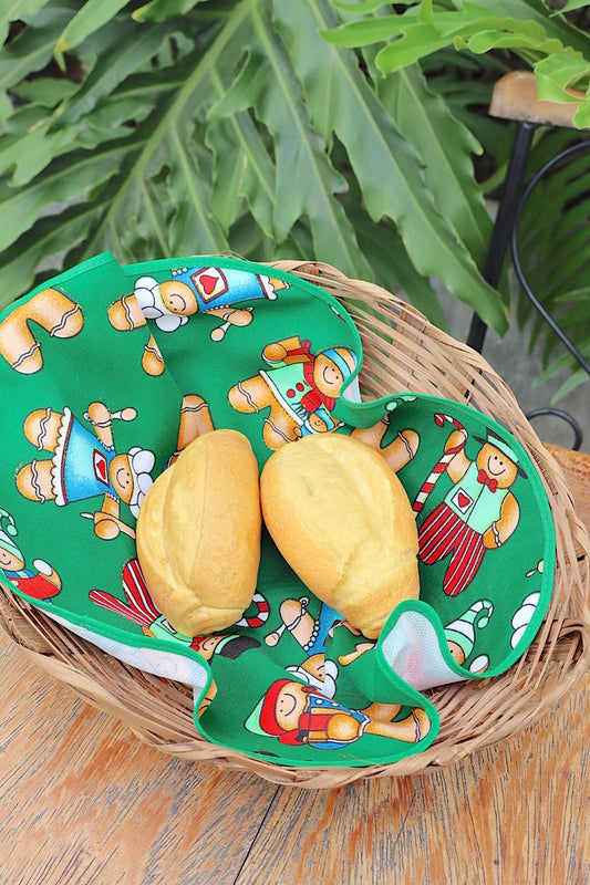 Cesta Porta Pão Bambu com Zíper Natal Biscoitos Verde