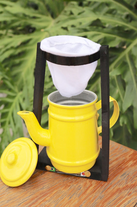 Kit Café Mini Bule 250ml Alumínio E Suporte Com Coador Amarelo