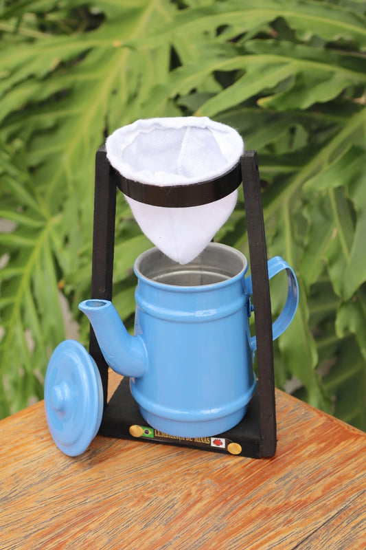 Kit Café Mini Bule 250ml Alumínio E Suporte Com Coador Azul Claro