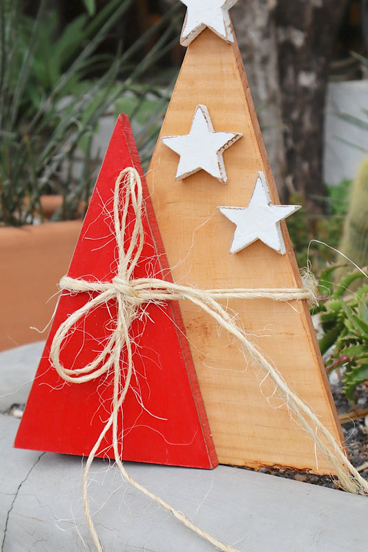 Árvore Madeira Natal Decorada Vermelha e Bege