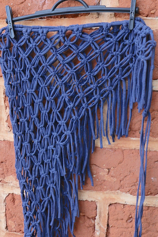 Saída de Praia Crochê Macramê Curta Recorte Luxo em Malha Azul
