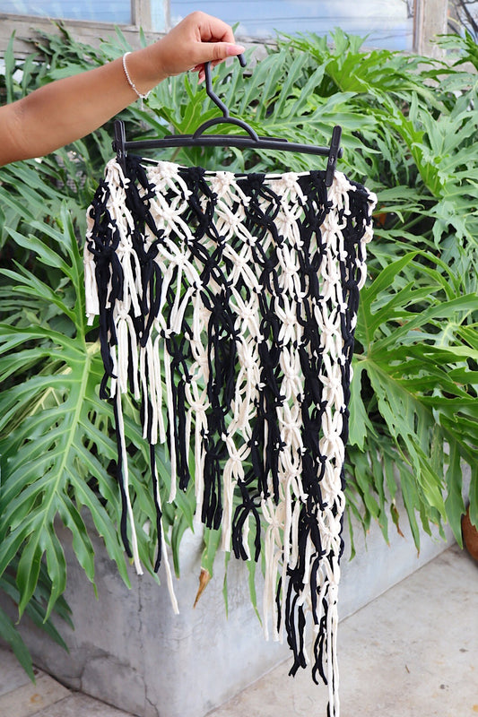 Saída de Praia Crochê Macramê Curta Recorte Luxo em Malha Cru e Preta