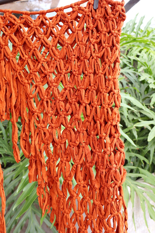 Saída de Praia Crochê Macramê Curta Recorte Luxo em Malha Terracota