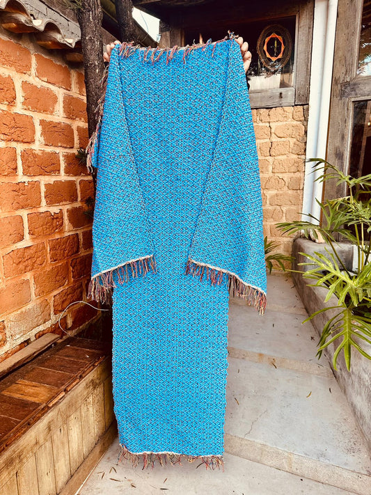 Toalha de Mesa Redonda Tricoline Poá Azul