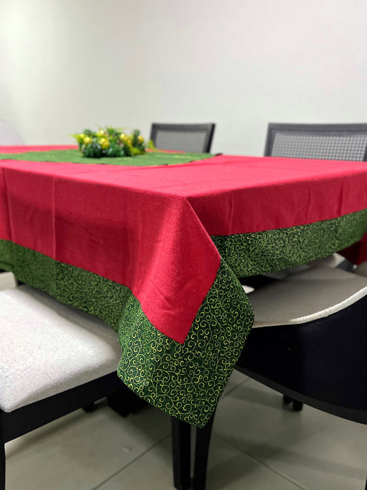 Toalha de Mesa com Barra Natal Geométrico Verde 1,4mx2,2m + Composê