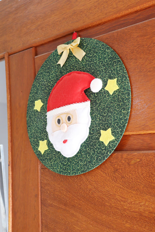 Enfeite de Porta Natal Papai Noel Geométrico Verde em MDF com Feltro