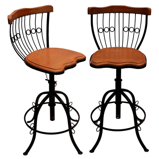 Banqueta Bistrô Tradicional Giratória e Regulável Rústica Em Ferro E Madeira