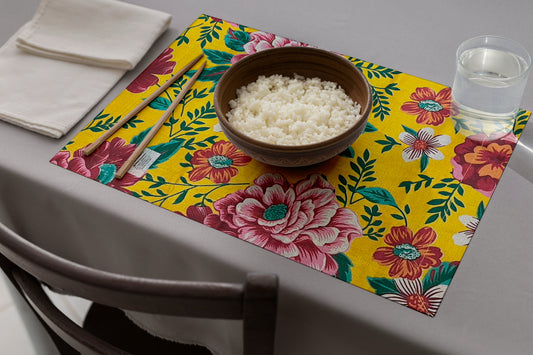Jogo Americano Dupla Face Chita/Juta Amarelo 6 Peças