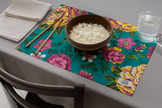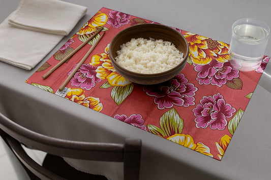 Jogo Americano Dupla Face Chita/Juta Salmão 6 Peças