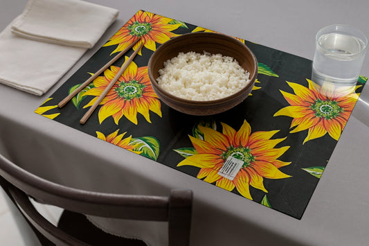 Jogo Americano Dupla Face Chita/Juta Preto 6 Peças