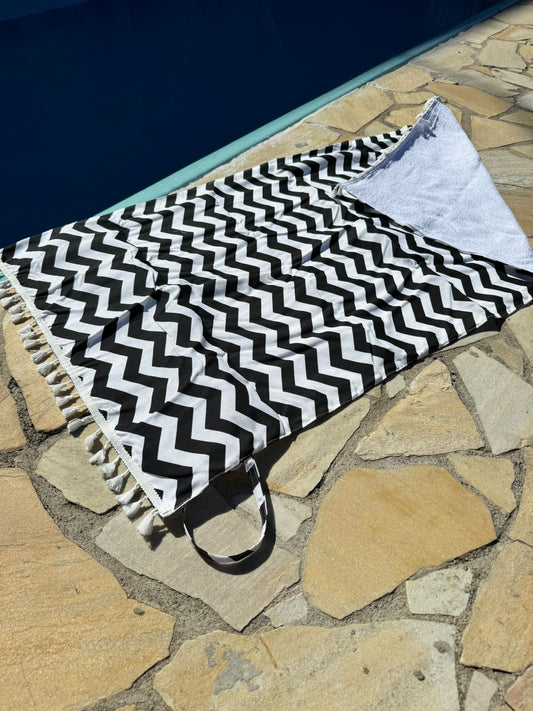 Toalha Canga Dupla Face com Tecido Impermeável Belize Chevron Preto