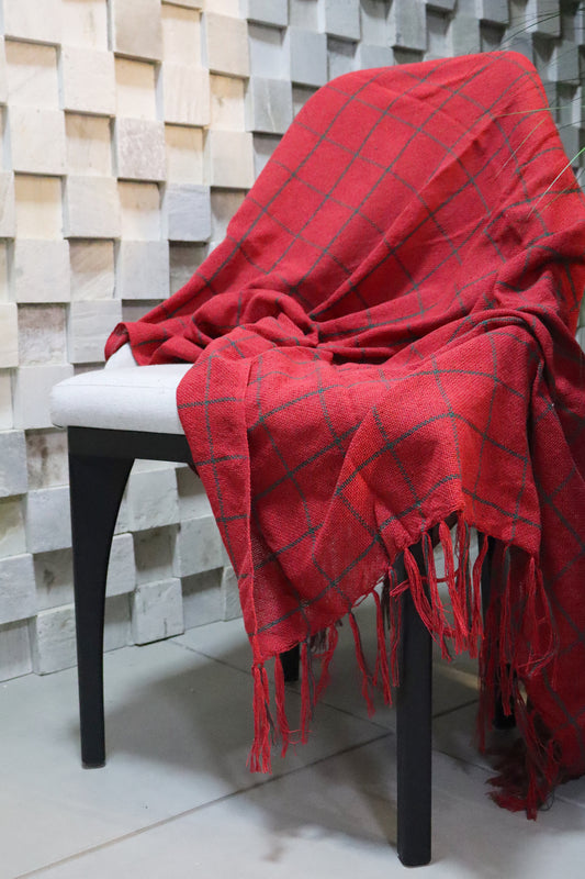 Manta para Sofá Algodão Grid Natal Vermelha com Listra Verde 1,20mx1,80m