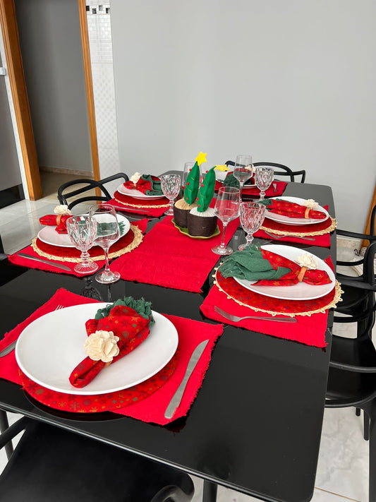 Jogo Americano Comum Vermelho Liso 7 Peças