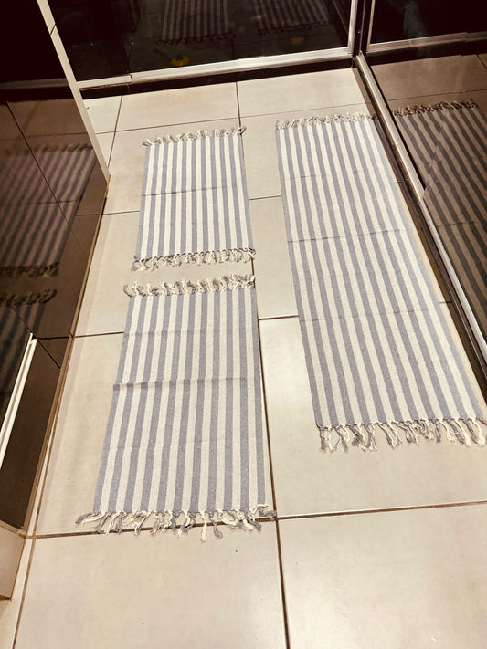 Jogo de Passadeira com 3 Peças em Algodão Comum Cinza e Cru