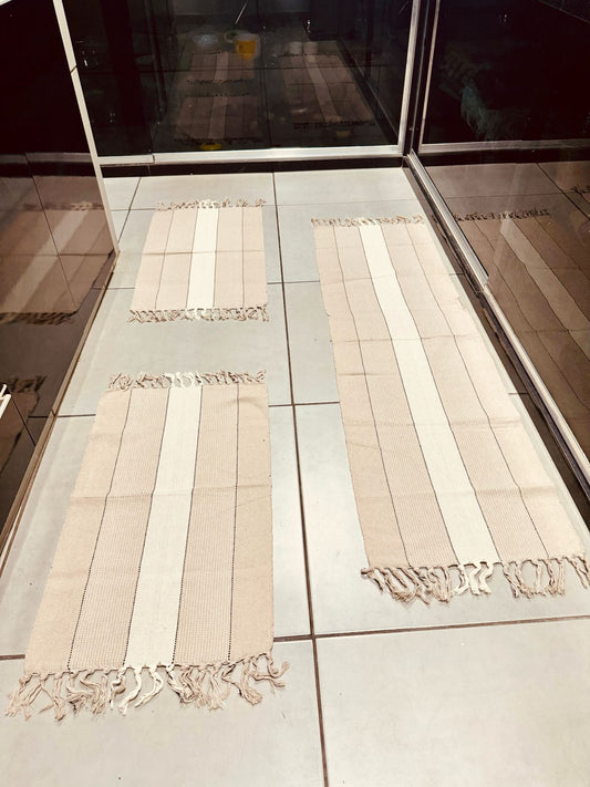 Jogo de Passadeira com 3 Peças em Algodão Comum Cru e Bege