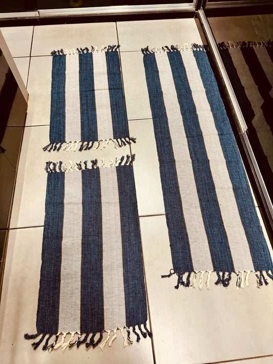Jogo de Passadeira com 3 Peças em Algodão Comum Azul e Cru