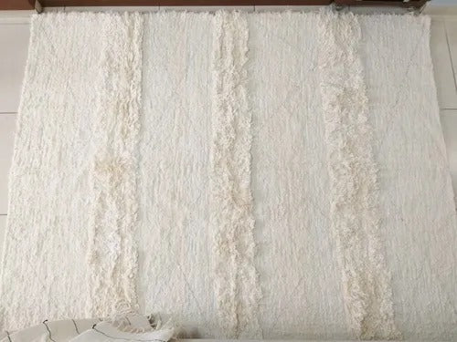 Tapete Algodão Felpudo Bege Listra Fina 50x80