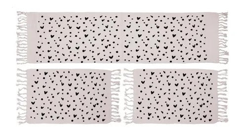 Jogo de Passadeira e Tapetes para Cozinha Minimalista 3 peças Pintado Corações