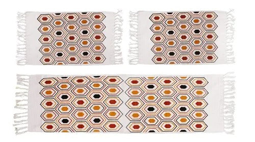 Jogo de Passadeira e Tapetes para Cozinha Minimalista 3 peças Pintado Colorido
