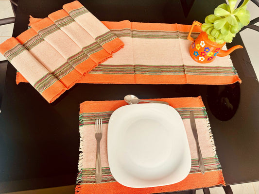 Jogo Americano Comum Laranja e Colorido 7 Peças