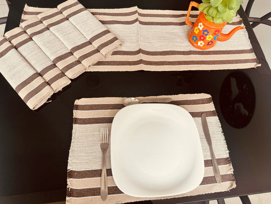 Jogo Americano Comum Marrom e Cru 7 Peças