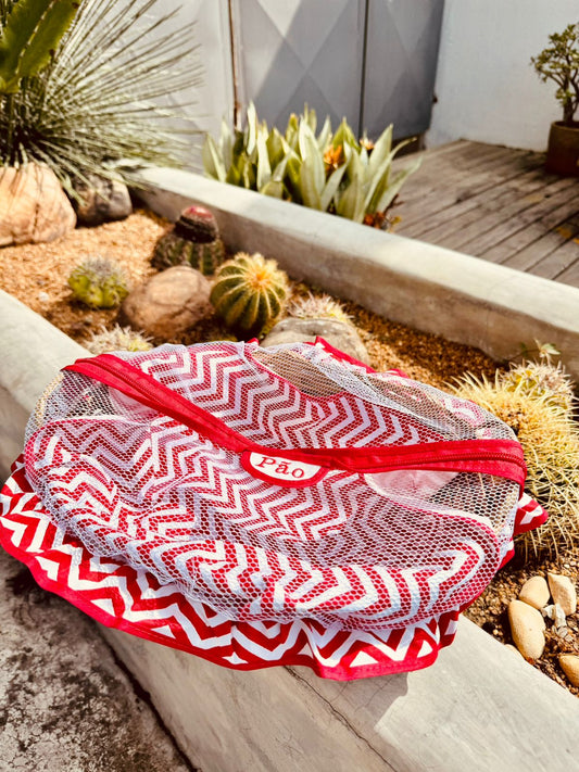 Cesta Porta Pão Bambu com Zíper Chevron Vermelho