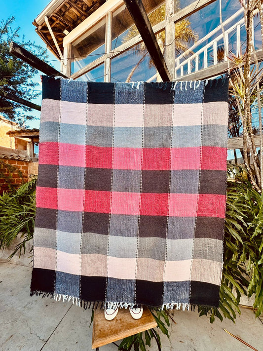 Tapete em Malha Xadrez Preto, Azul e Vermelho 1,50x1,50m